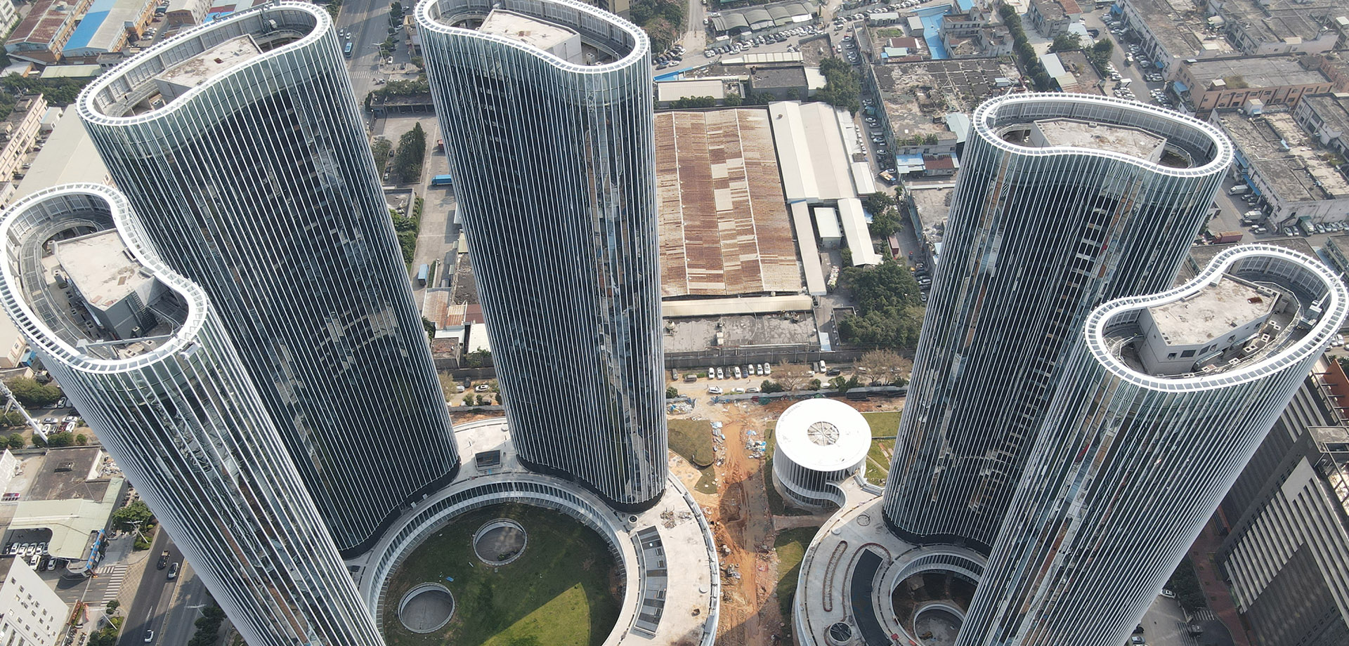 幕墻面積:約11.3萬m2 項(xiàng)目設(shè)計(jì):美國(guó)KPF建筑事務(wù)所 幕墻類型:框架式玻璃幕墻、弧形鋁板幕墻系統(tǒng)、鋁合金格柵系統(tǒng)等