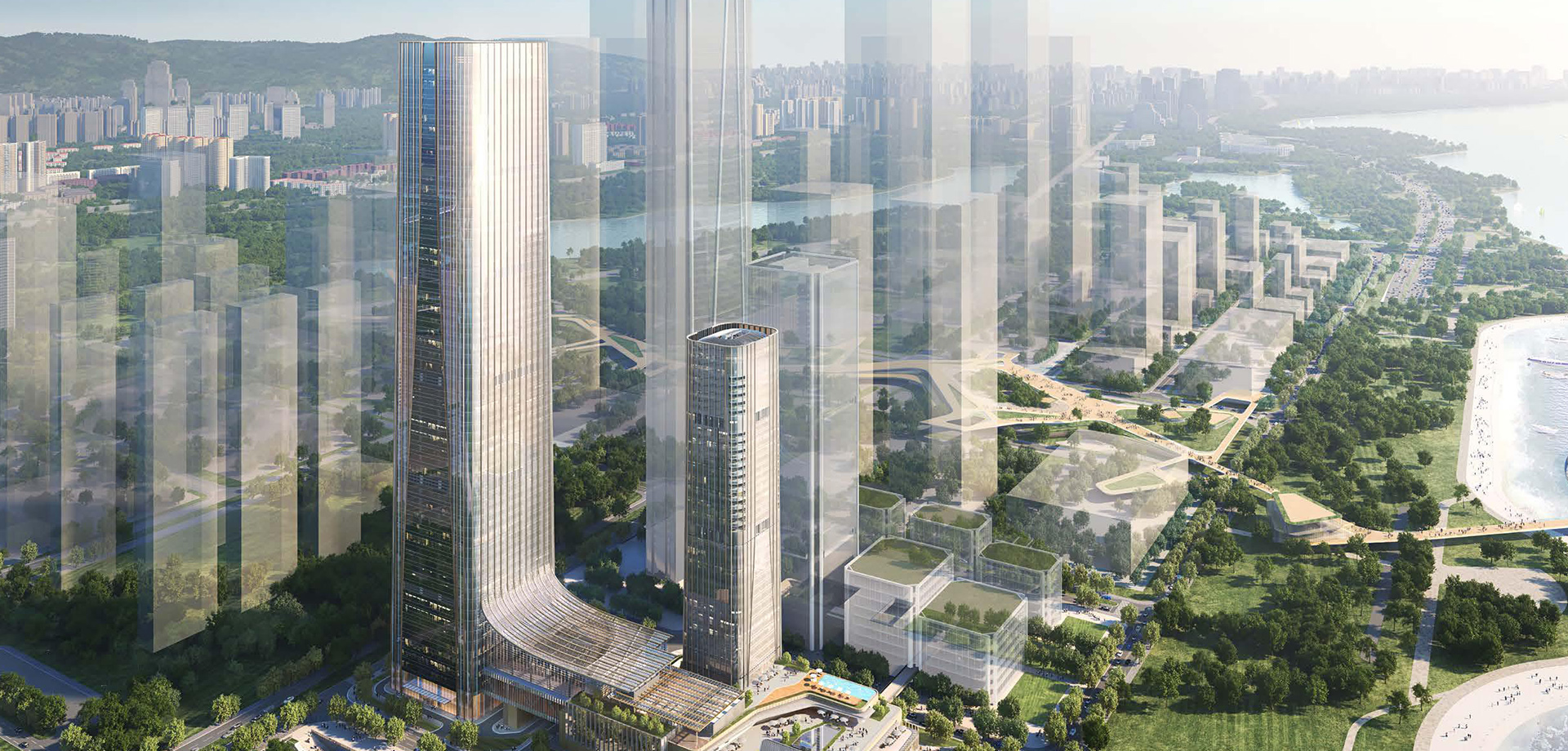建筑高度:300米(A塔62層)、170米(B塔)