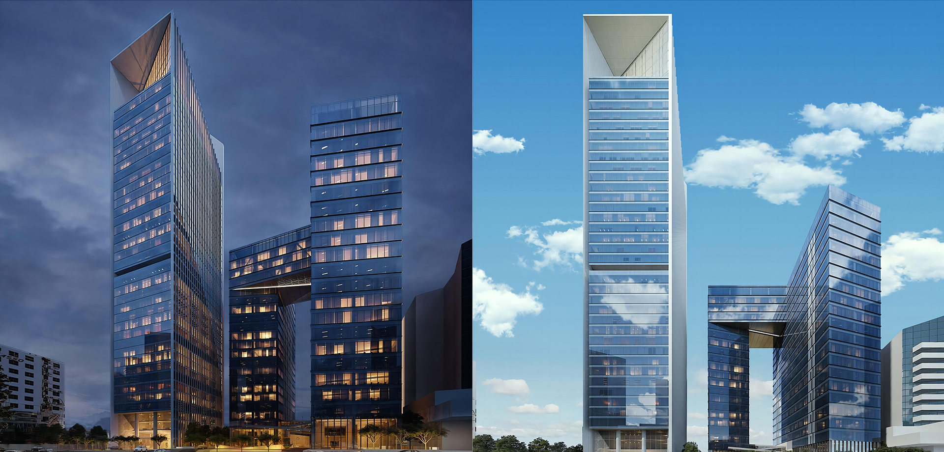 項目設(shè)計:Ekarchitects建筑事務(wù)所 幕墻類型:單元式玻璃幕墻、鋁板幕墻等