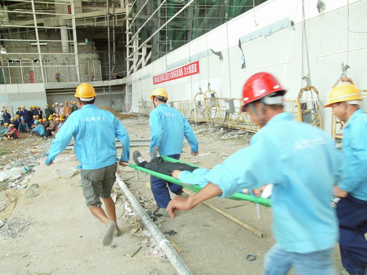 現(xiàn)場進(jìn)行高空墜落事故搶救演練