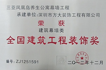 “全國(guó)建筑工程裝飾獎(jiǎng)”是國(guó)家住房和城鄉(xiāng)建設(shè)部批準(zhǔn)設(shè)立的中國(guó)建筑裝飾行業(yè)的最高榮譽(yù)獎(jiǎng),由中國(guó)建筑裝飾協(xié)會(huì)主辦評(píng)選,每?jī)赡暝u(píng)選一次。此次深圳市方大裝飾工程有限公司一舉獲得四項(xiàng)“全國(guó)建筑工程裝飾獎(jiǎng)”,突顯了方大幕墻在建筑裝飾行業(yè)設(shè)計(jì)與施工水平等方面的優(yōu)勢(shì),反映了方大裝飾公司在企業(yè)管理、技術(shù)實(shí)力、質(zhì)量保證體系等方面的實(shí)力。
