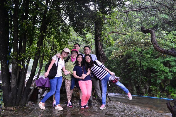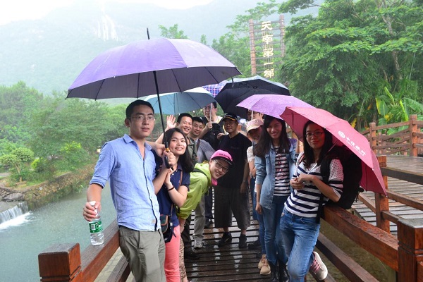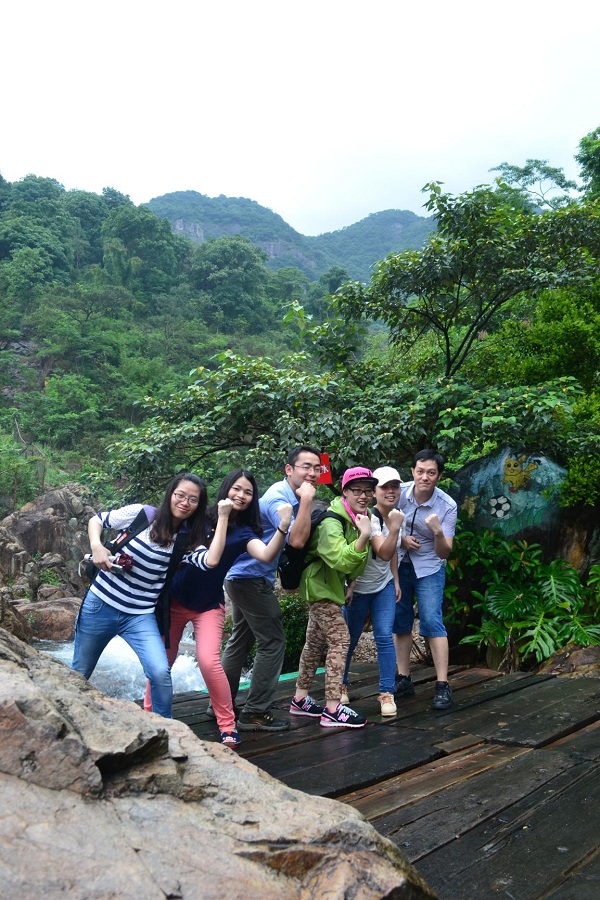 活動當(dāng)天一早就開始下起了大雨,大家冒雨在公司集合,乘大巴向白水寨出發(fā),這場大雨也意味著此次活動將是一次特別的生日經(jīng)歷。大家一路歡聲笑語抵達(dá)了白水寨景區(qū)。白水寨果然名不虛傳,瀑布從山頂噴薄而落,不禁讓人想到李白 “飛流直下三千尺,疑是銀河落九天”的名句,景區(qū)內(nèi)可謂“五步一小景,十步一大景”,各種景色讓大家目不暇接,當(dāng)大家走在素有“天南第一梯”的9999級的登山步徑上,可以在木階之間清晰看到腳下流淌的湍急水流,刺激驚險(xiǎn)。
