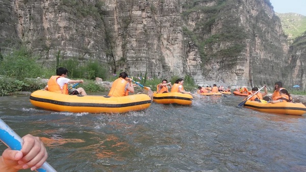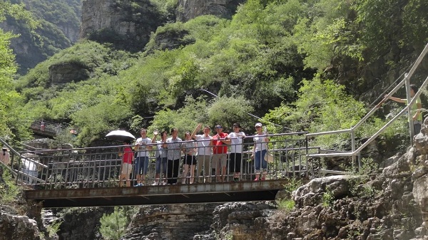 經(jīng)過(guò)2個(gè)多小時(shí)的車程,北京分公司壽星們于上午9時(shí)到達(dá)十渡自然風(fēng)景區(qū),開(kāi)始一天的游玩孤山寨、漂流戲水等活動(dòng)。孤山寨有著名的“一線天” “山門迎客”、“仙女浴潭”、“千古河床”、“洗心潭”、“石中石”、“銀川冰谷”等景觀,滿眼盡是賞心悅目的異石奇景。壽星們欣賞著自然風(fēng)光,感嘆著天地造物的神奇。遠(yuǎn)離城市的宣泄,忘記平時(shí)工作的緊張與疲憊,全心身不自覺(jué)地投入到了大自然的安靜和諧之中,溪水潺潺,鳥(niǎo)蟲(chóng)低鳴,十分地愜意與舒爽,雖然是爬山觀景,壽星們絲毫沒(méi)有倦意。中午稍作休息,壽星們來(lái)到溪水邊乘坐皮筏順?biāo)鳎谙袘蛩詈髢叭蛔兂闪藵娝髴?zhàn),溪水打濕了衣襟,壽星們毫不介懷,溪水之上留下了陣陣歡快的笑聲。