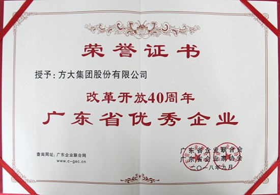 9月26日,由廣東省企業聯合會、廣東省企業家協會主辦的第24屆廣東省企業家活動日大會在廣州舉行,活動對“改革開放40周年廣東省優秀企業、優秀企業家”進行了表彰,方大集團因在改革開放以來作出的突出貢獻被授予“改革開放40周年廣東省優秀企業”稱號。省委書記李希接見了方大集團等優秀企業、優秀企業家代表,省長馬興瑞出席會議并講話。