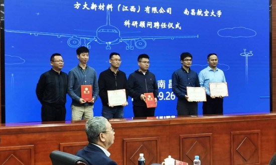 方大江西新材向南昌航空大學科研合作人員頒發科研顧問聘任證書