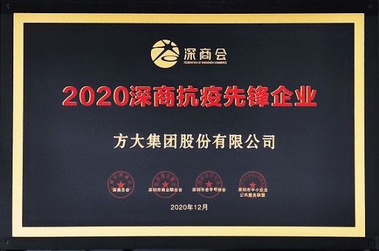 近日,第七屆全球深商大會暨2020深商抗疫先鋒企業表彰大會在深圳隆重舉行,方大集團因抗擊疫情表現突出榮獲“2020深商抗疫先鋒企業”。