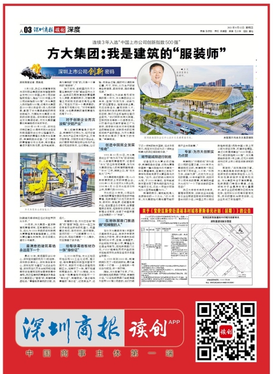 浙江大學學術委員會委員、管理學院教授、創新創業與戰略學系主任郭斌在接受深圳商報記者采訪時介紹,《中國上市公司創新指數報告》選取中國A股上市公司為評估對象,構建評估模型,通過大數據測算出“2020中國上市公司創新指數500強”。方大集團能夠連續3年上榜,這充分說明深圳這家上市公司在創新領域的實力。